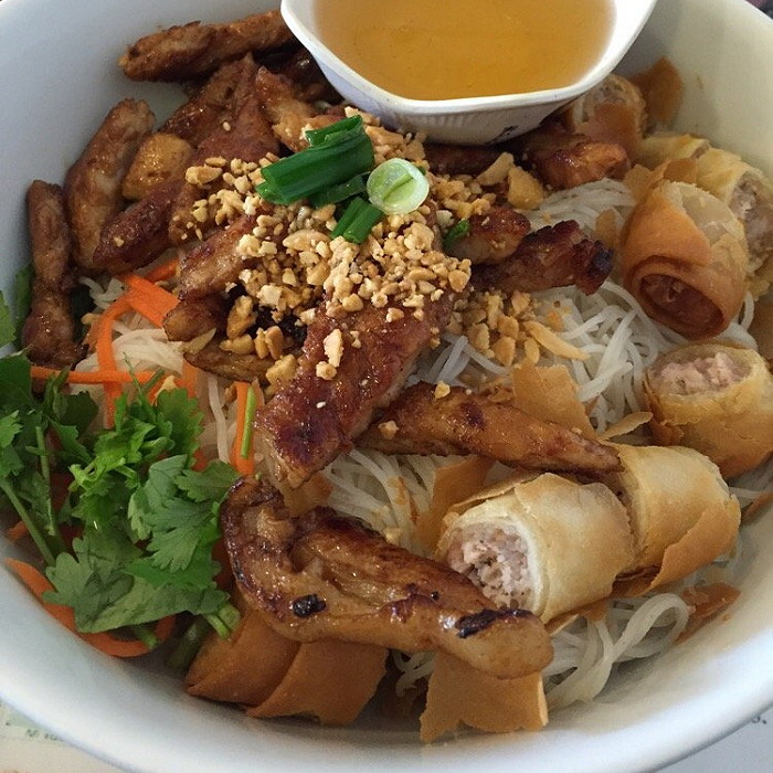 Grilled Pork & Egg Roll over Rice Vermicelli Bowl