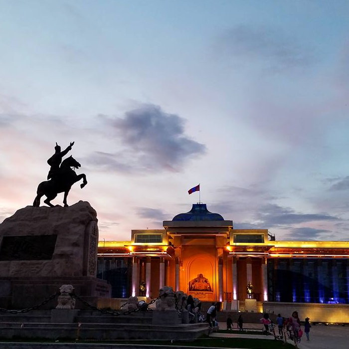 Sukhbaatar Square in Ulaanbaatar, sunset