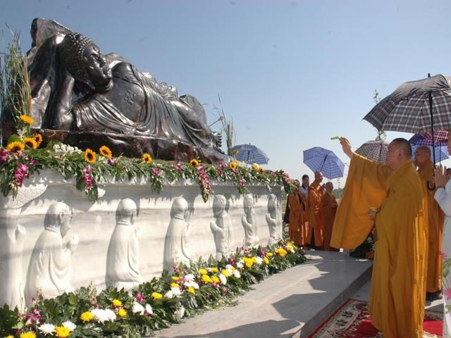 Tượng Phật nhập Niết bàn bằng đá sapphire