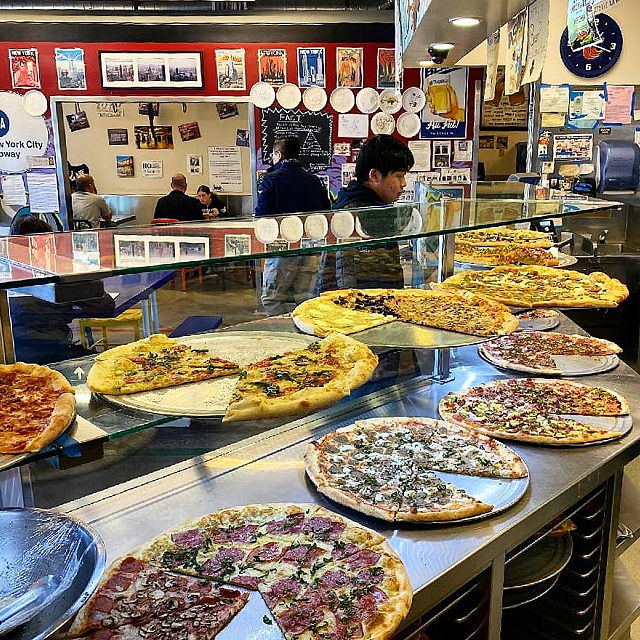 | The pizzeria offers a range of pizza options, including classic cheese, pepperoni, and margherita, as well as specialty pizzas like the white pizza, the pesto pizza, and the BBQ chicken pizza. In addition to pizza, A Slice of New York also serves salads, calzones, and garlic knots. The pizzeria has received many positive reviews for its excellent pizza, friendly service, and casual atmosphere. It is a great place to grab a slice or a whole pie with friends and family. | |