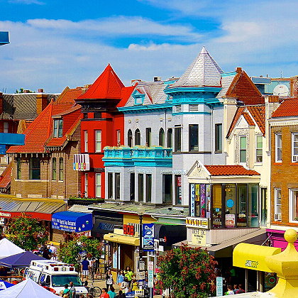 | Adams Morgan is much more than a neighborhood with a crowded nightlife scene. You’ll find historic row houses around 18th Street, as well as a variety of independently owned stores. | |