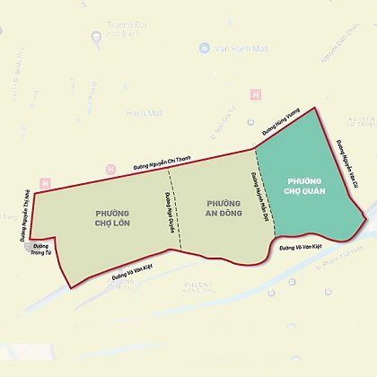 | Chợ Quán Ward, Ho Chi Minh City includes the entire natural area and population size of Ward 1, Ward 2 and Ward 4 (District 5) arranged into. Headquarters of Cho Quan Ward People's Committee at 211 An Duong Vuong, Cho Quan Ward, Ho Chi Minh City. | |