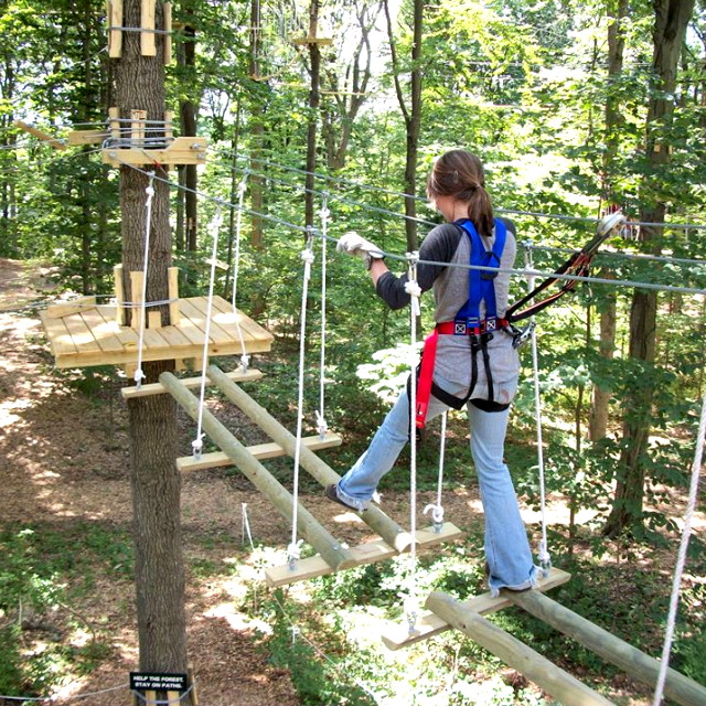 | The Adventure Park at the Discovery Museum is an outdoor aerial adventure park located in Bridgeport, Connecticut. It offers visitors a unique and thrilling experience in a natural woodland setting. It includes 23 zip lines, six difficulty levels, and over 170 challenge bridges. This outdoor adventure park offers an exciting and memorable experience for those seeking an adrenaline rush and outdoor fun. | |