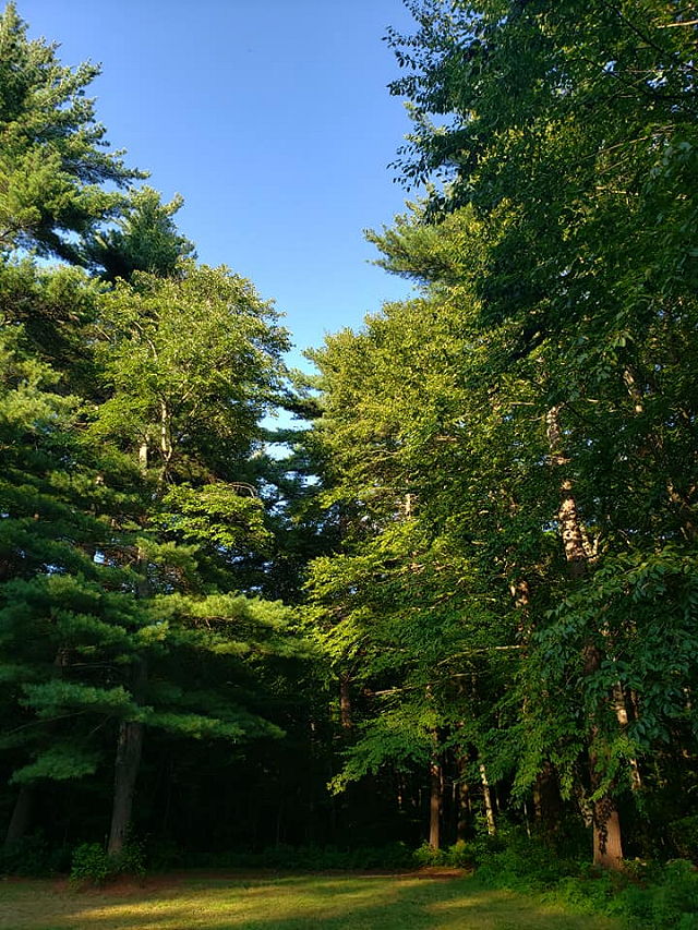 | The woods surrounding Cleveland Pond are primarily pine and oak, with some beech and holly. There are wetlands too, with swampy areas as well as freshwater marshes. Beaver Brook enters the property from the north and flows through the pond. | |