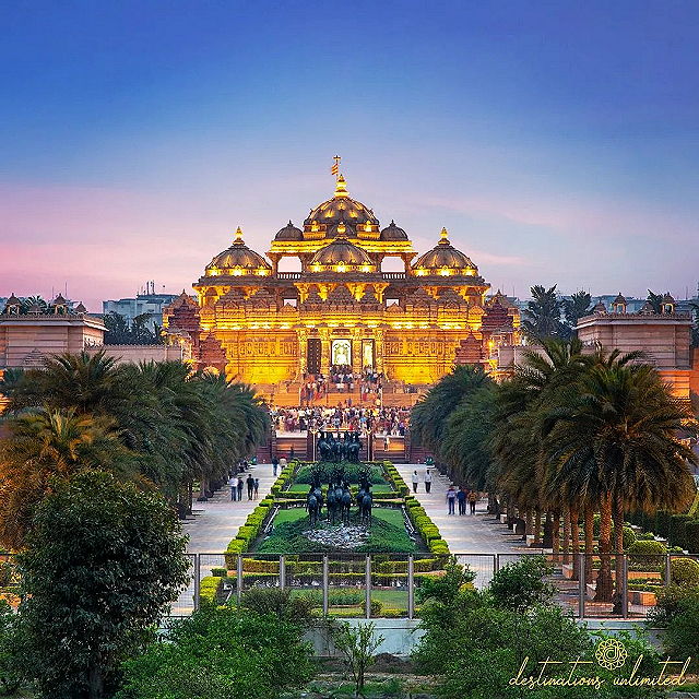| Akshardham Temple, officially known as the Swaminarayan Akshardham Temple, is a grand Hindu temple complex located in Delhi, the capital city of India. It is one of the largest and most intricately designed Hindu temples in the world. The temple is dedicated to Bhagwan Swaminarayan and showcases a blend of traditional Indian architectural styles. | |