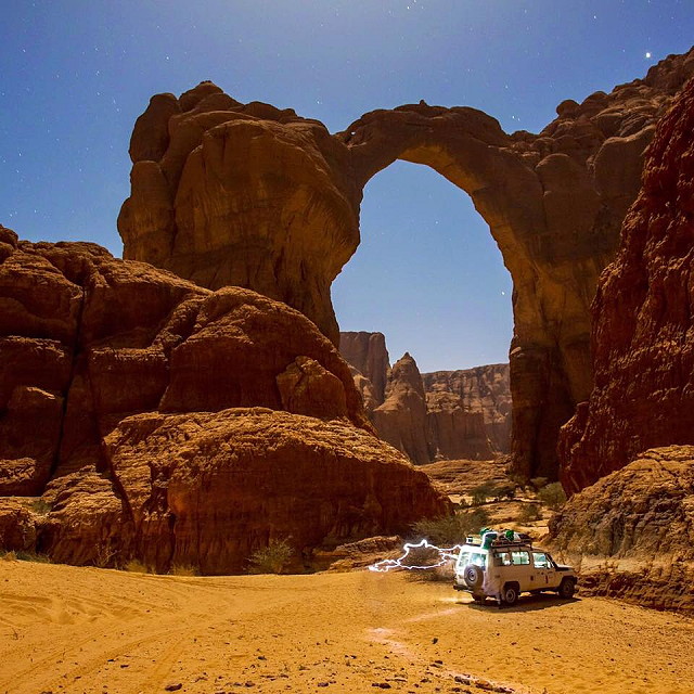 | Aloba Arch is unique because it is the only one in the top ten list of longest arches not located in either the United States or China but in the remote wilderness of Chad. The arch is part of a region with similar geology to the Colorado Plateau, which has produced a number of natural arches and similar landforms. Despite its grandeur, visiting the Aloba Arch can be quite challenging due to its remote location and the harsh environment surrounding it. The best time to visit is between November and February when the temperatures are milder, but specialized vehicles and experienced guides familiar with the area are necessary for the journey. The Aloba Arch began as sedimentary rock layers deposited over time, which changed due to pressure and movement beneath the Earth's crust. Over millions of years, the region experienced uplift and subsidence, leading to extensive rock formations and deep canyons. The arch appeared as softer rock layers eroded more quickly than the harder layers above, resulting in a bridge-like structure that has withstood the test of time. The sedimentary layers reveal the region's geological history, with each stratum bearing witness to different epochs in Earth's evolution. | |