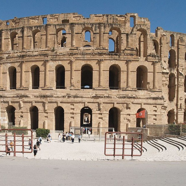 | The amphitheatre was built in the 3rd century AD during the Roman Empire's rule in North Africa. It was primarily used for gladiatorial contests and other public spectacles, accommodating up to 35,000 spectators. The amphitheatre's elliptical shape, imposing walls, and intricate architecture make it a remarkable testament to Roman engineering and design. The Amphitheatre of El Jem stands as an iconic symbol of the Roman Empire's influence and grandeur in ancient Tunisia. Today, it serves as a major tourist attraction, drawing visitors from around the world who come to admire its impressive structure, explore its underground passages and chambers, and imagine the thrilling events that once took place within its walls. Visitors to the site can explore the various levels of the amphitheatre, including the seating area, the arena, and the underground chambers where gladiators and animals were kept. The amphitheatre also houses a small museum showcasing artifacts related to its history. The Amphitheatre of El Jem is an important cultural and historical landmark in Tunisia and is often considered one of the country's most iconic and awe-inspiring sites. | |