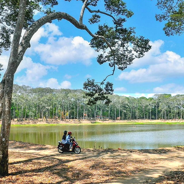 | - Ao Bà Om is a large rectangular pond surrounded by ancient trees, including numerous towering Dipterocarpus (Dầu) trees. These trees have roots that rise dramatically above the ground, creating a unique and enchanting landscape. - Ao Bà Om holds a significant place in the Khmer cultural heritage. It is closely tied to local legends, including a story about a competition between men and women to dig the pond. The women outsmarted the men, leading to the pond's name and its association with resourcefulness and unity. | |
