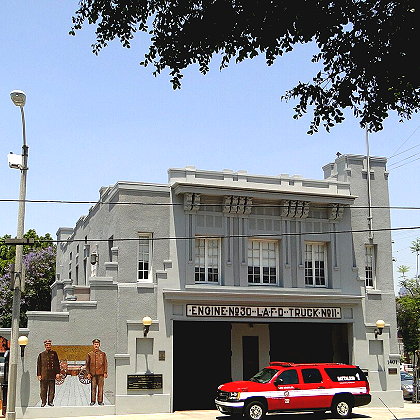 | Fire Station No. 30, Engine Company No. 30 is a historic fire station and engine company in the South Los Angeles area of Los Angeles, California. Built in 1913, its white firemen served a predominantly white neighborhood. Closed in 1980, the building was adapted for use as the African American Firefighter Museum. | |