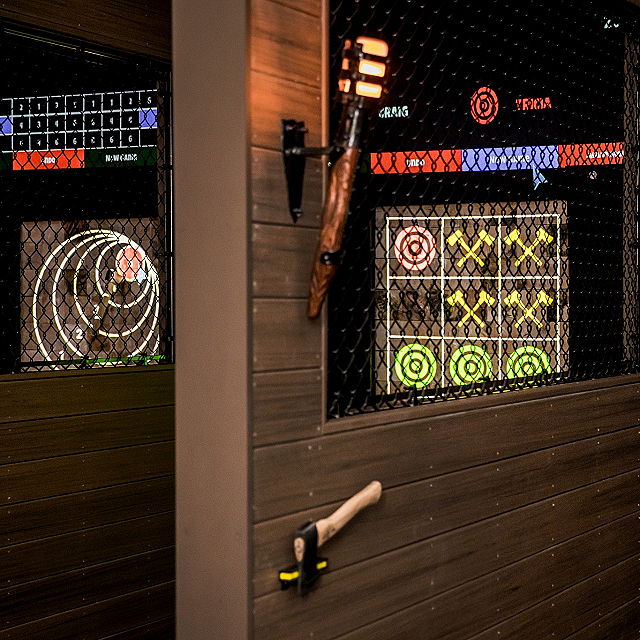 | At Axel's Throw House, visitors can learn how to safely throw axes at targets under the guidance of trained instructors. The venue typically provides multiple throwing lanes, allowing for simultaneous axe throwing sessions. It's a fun and unconventional activity for those seeking a bit of adventure and competition in Nashua. | |