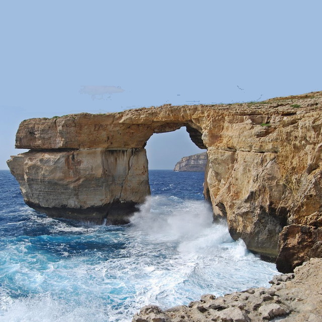 | The limestone feature, which was in Dwejra Bay close to the Inland Sea and Fungus Rock, was one of the island's major tourist attractions until it collapsed in stormy weather on 8 March 2017. The arch, together with other natural features in the area, has appeared in a number of international films and media productions including "Game of Thrones. Today, visitors can still visit the site to see the remains of the pillars and the surrounding cliffs. The area around the Azure Window is also popular for diving and snorkeling, as the clear waters around the site are home to a variety of marine life. | |
