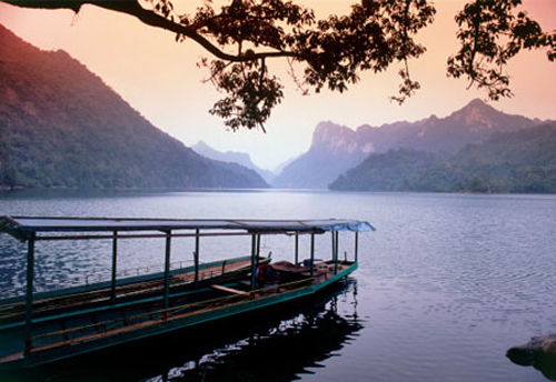 | Ho Ba Be or Ba Be Lake lies in the middle of avast limestone mountain range of Ba Be District, Bac Kan Province. Ba Be Lake itself is actually three smaller lakes joined together - Pe Lam, Pe Lu and Pe Leng. | |