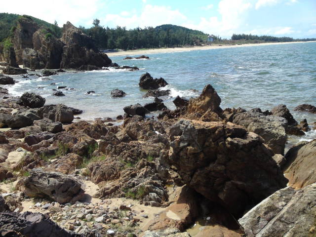 | The beach is situated in a picturesque cove, surrounded by tall cliffs and dense jungle. Visitors can explore the beach and its surrounding area, discovering hidden coves, small caves, and spectacular rock formations. The dancing rock formations are said to resemble dancers in motion, giving the beach its name. The water at Dancing Rock Beach is clear and calm, making it an ideal spot for swimming and snorkeling. Visitors can also enjoy sunbathing on the beach or taking aleisurely stroll along the shore. The beach is abit off the beaten path, but it is well worth the effort to get there. Visitors can either drive or take aboat from nearby towns to reach the beach. There are no restaurants or facilities on the beach, so visitors should bring their own food and water. Overall, Dancing Rock Beach is ahidden gem of Quang Binh Province, offering visitors achance to experience the natural beauty and tranquility of Vietnam's coastline. | |