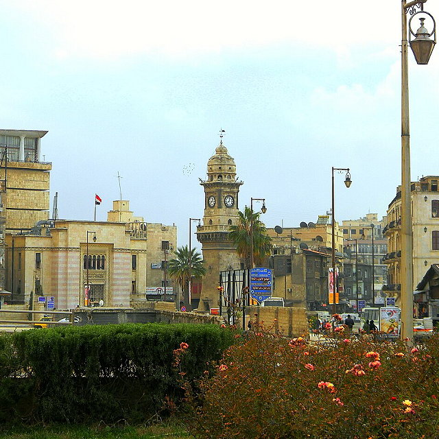 | Near Bab Al-Faraj stands the Bab Al-Faraj Clock Tower, an iconic structure built during the Ottoman era in the early 20th century. It is a notable landmark in Aleppo’s skyline. | |