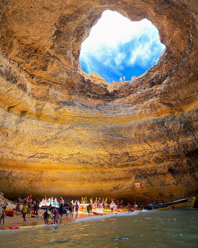 | The Benagil Cave, also known as Algar de Benagil, is a stunning sea cave located near the town of Benagil in the Algarve region of Portugal. It has gained international recognition for its unique beauty, natural architecture, and accessibility by boat, making it a popular tourist destination. | |
