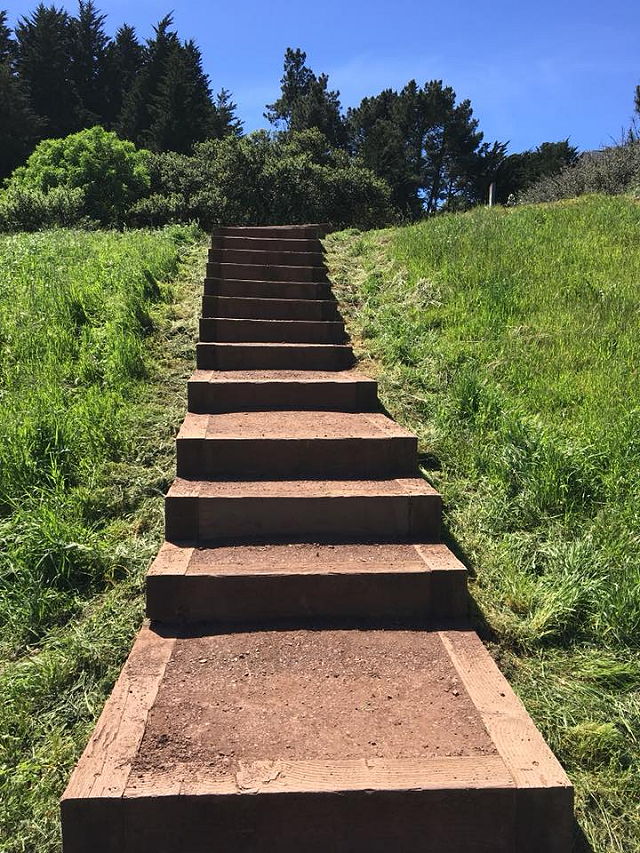 | Billy Goat Hill has amazing views of the city and bay, and a mix of urban forest and grassland plant communities. American kestrels and other raptors often soar overhead, hunting small mammals and reptiles. As rodents scurry through grasslands, they mark their trails with urine, which absorbs ultraviolet light. | |