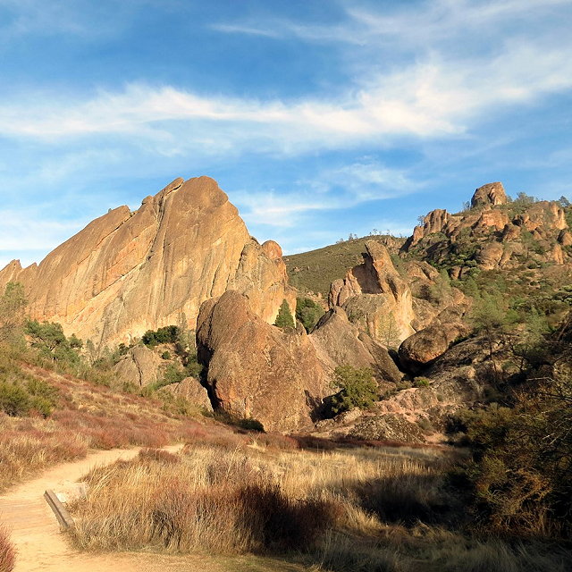 | - The Balconies Cave Trail is a moderate hike that is accessible from the west entrance of Pinnacles National Park. It's a loop trail that connects to other routes like the Juniper Canyon Trail. The trail includes scenic views of the park's rugged rock formations, wildflowers in spring, and opportunities to spot California condors. - The cave can be dark in places, so bringing a flashlight or headlamp is essential. It's a family-friendly activity, though some sections require careful navigation through tight spaces and uneven terrain. | |