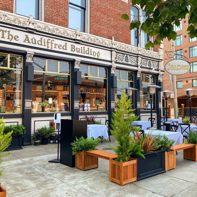 | Located in the historic Audiffred building, Boulevard is a celebrated San Francisco restaurant on the Embarcadero waterfront. Boulevard has continuously received high praise and a dedicated following. Quintessentially Californian, the menu seamlessly incorporates the regional seasonal bounty with studied classic and modern technique. | |