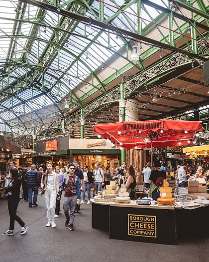 | Borough Market consists of three main areas: Three Crown Square (larger producers and merchants), Green Market (small, specialist produce traders) and Borough Market Kitchen (street food traders). Surrounding the Market, you’ll find a complementary blend of restaurants, bars and shops. | |