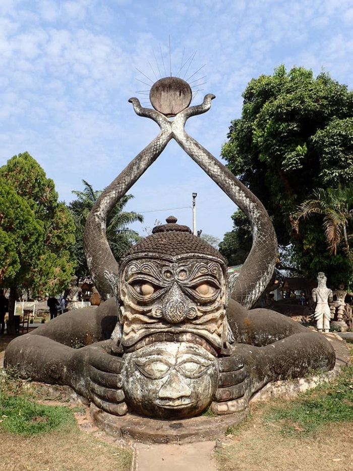 | Creation and Design: The Buddha Park was created in 1958 by a Lao religious artist and sculpture enthusiast named Luang Pu Bunleua Sulilat. It is a unique blend of Buddhism and Hinduism, featuring a collection of statues and sculptures that depict various deities, mythical creatures, and religious figures. Highlights and Attractions: The park is best known for its massive concrete statues, including a giant reclining Buddha that measures approximately 40 meters long. Other notable sculptures include depictions of gods, goddesses, demons, and animals from both Buddhist and Hindu mythology. Symbolism and Significance: The statues in the Buddha Park carry symbolic meanings associated with Buddhist and Hindu beliefs. Visitors can observe and learn about the intricate details and representations of different religious and philosophical concepts as they explore the park. Serene Setting: The Buddha Park is located in a peaceful and scenic setting, surrounded by lush greenery and beautiful views of the Mekong River. The tranquil atmosphere provides a serene environment for contemplation and reflection. Accessibility and Facilities: The park is open to visitors throughout the year and has basic facilities such as pathways, seating areas, and souvenir shops. It is common for visitors to spend a couple of hours exploring the park and taking photographs. Combination with Other Attractions: Visitors to the Buddha Park often combine their visit with other nearby attractions, such as the nearby Wat That Luang, one of the most important Buddhist temples in Laos, or take a boat ride on the Mekong River. Cultural Experience: The Buddha Park offers visitors a unique cultural experience, providing insights into the religious beliefs and artistic traditions of Laos. It is an opportunity to appreciate the fusion of Buddhism and Hinduism in Lao culture. | |