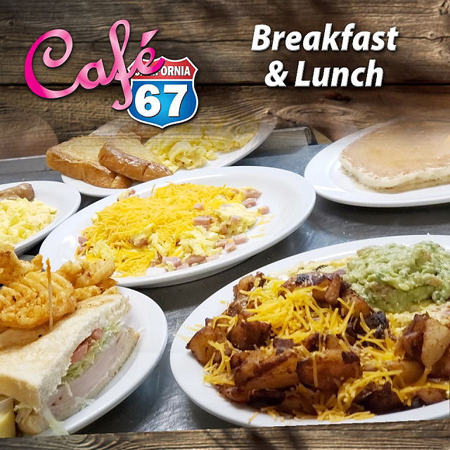 | Café 67 offers home-style cooking, quick friendly service and unique movie décor all in a convenient location. Located at the intersection of Highway 67 and Mapleview in Lakeside. Everything on the menu is created with quality products and comes in large portions. There are a huge variety of items...Something for everyone's tastes!! | |