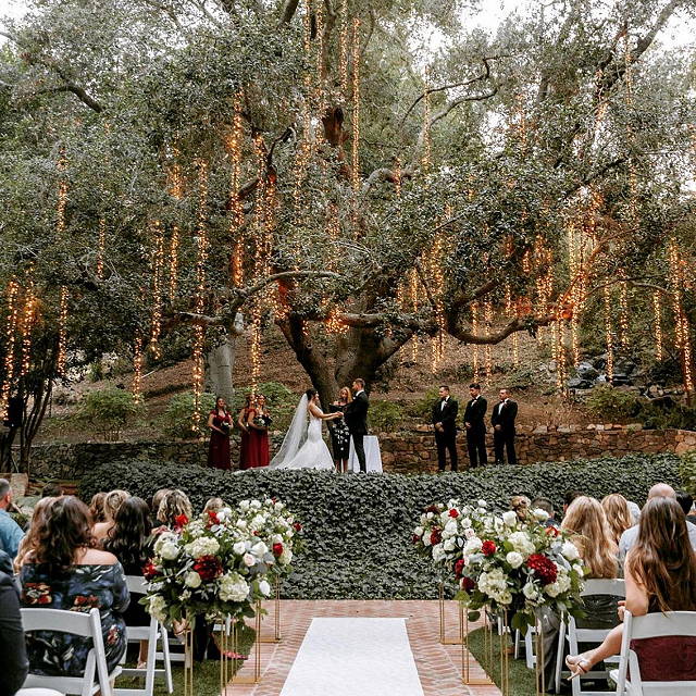 | Boasting with trickling waterfalls, weeping greenery, quaint rustic surroundings, and flowing branches decorated with fairy lights, Calamigos Ranch is in a class of its own. | |