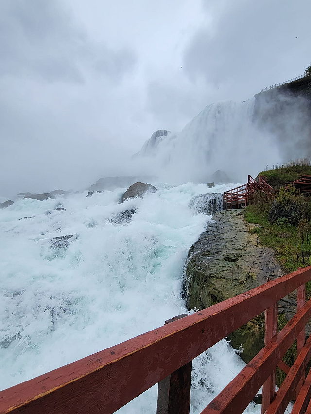 | - Observation Deck: The main attraction at the Cave of the Winds is the series of wooden walkways and platforms that take visitors as close as possible to the base of the Bridal Veil Falls, a part of the American Falls. The walkways are positioned in such a way that you can feel the mist and spray from the falls, making it an immersive and thrilling experience. - Equipment: To protect visitors from the mist and provide them with suitable footwear, visitors are provided with special ponchos and sandals. You will also need to hold onto the handrails as you make your way down the walkways to the Hurricane Deck. - Hurricane Deck: The highlight of the Cave of the Winds experience is the Hurricane Deck, where you can stand just feet away from the powerful rush of water from Bridal Veil Falls. The name "Hurricane Deck" is apt, as the force of the falling water creates a hurricane-like sensation. - Seasonal Operation: The Cave of the Winds is typically a seasonal attraction, operating during the warmer months, from late spring through early fall. The walkways are disassembled and stored during the winter to protect them from ice and freezing temperatures. - Accessibility: The attraction is easily accessible within Niagara Falls State Park, and it is located near other iconic attractions, such as Prospect Point and the Maid of the Mist boat tours. - Souvenirs and Facilities: There are gift shops and facilities on-site where you can purchase souvenirs and refreshments. The Cave of the Winds is a thrilling and unique way to experience the raw power and beauty of Niagara Falls from an incredibly close vantage point. It provides a memorable opportunity to feel the mist, hear the roar of the falls, and witness the natural wonder up close. It's a popular attraction for visitors to Niagara Falls, offering a once-in-a-lifetime experience. | |