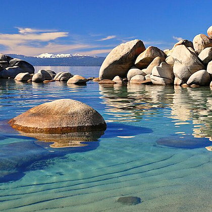 | Chimney Beach is a beach located on the Nevada side of Lake Tahoe. It is peaceful, beautiful, and truly a gem – especially for those looking for a quieter, more intimate Tahoe experience. The setting features stunning turquoise waters, sandy coves nestled between large boulders, and breathtaking views of the east coast. | |