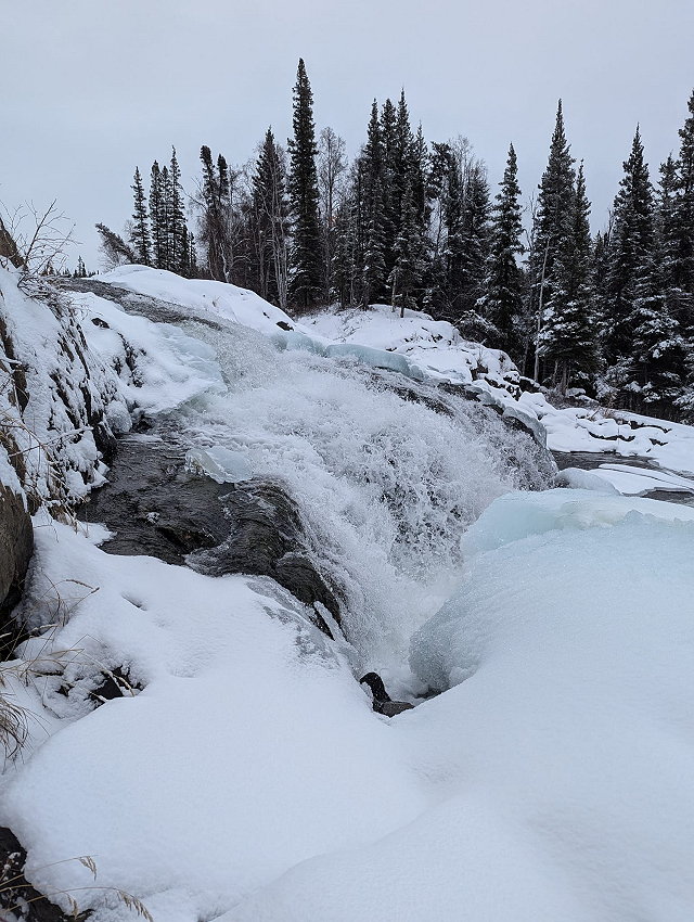 | The falls are characterized by their cascading waters flowing over ancient Precambrian rocks, creating a dramatic and mesmerizing display. The sound of rushing water combined with the natural setting makes this a peaceful yet invigorating destination. | |