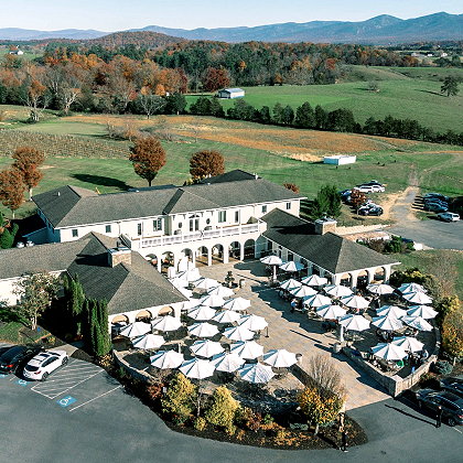 | The Tuscan-style villa and gourmet onsite Bistro offer beautiful panoramic views of the Blue Ridge Mountains and an easy to love setting for weddings, private events, or a quick weekend escape. Guests are welcome anytime during business hours to enjoy wine tasting flights or wine by the glass or bottle. All of the indoor and outdoor seating is available on a first come, first served basis. | |