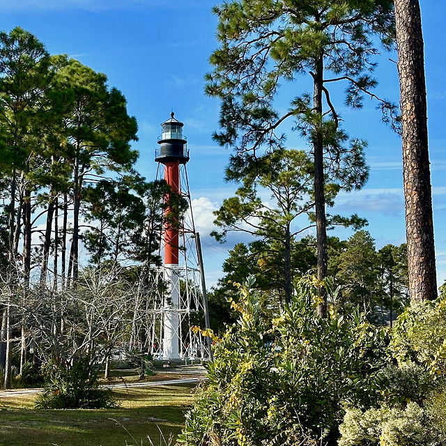 | Architecture: The lighthouse stands at 103 feet tall and has a distinct skeletal iron frame. It has a central tower surrounded by a spiral staircase, leading to the lantern room at the top. The lantern room houses the light that serves as a navigational aid for mariners. Historical Significance: The Crooked River Lighthouse has historical significance as one of the last remaining historic lighthouses along Florida's Gulf Coast. It has been preserved and restored to its original condition. Museum and Gift Shop: The lighthouse site includes a museum and gift shop where visitors can learn about the history of the lighthouse, maritime history, and the local area. The museum often features exhibits and artifacts related to the lighthouse's past. Events and Tours: The Crooked River Lighthouse hosts events throughout the year, and guided tours are available for visitors who want to learn more about the lighthouse's history and the maritime heritage of the region. Climbing the Lighthouse: Visitors often have the opportunity to climb to the top of the lighthouse for panoramic views of the surrounding area, including St. George Sound and the Gulf of Mexico. Grounds: The lighthouse is surrounded by picturesque grounds, making it a pleasant place to explore. There might be outdoor exhibits, picnic areas, and opportunities for birdwatching. Lighthouse Festival: The annual Crooked River Lighthouse Festival is a popular event featuring activities, entertainment, and the opportunity to climb the lighthouse. The festival celebrates the maritime history of the area. | |