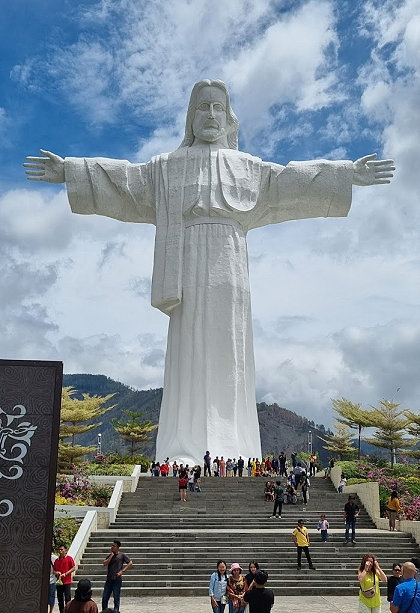 | On September 19, 2024, Indonesia inaugurated the world's tallest statue of Jesus Christ on Sibeabea Hill in Samosir district, North Sumatra province, overlooking Lake Toba. Standing 61 meters tall, the statue offers panoramic views of Lake Toba. It is 20 meters taller than the 39.6-meter-tall Christ the Redeemer statue in Brazil. The project aims to boost tourism in the region. | |