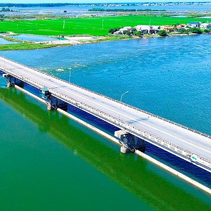 | Tam Giang Bridge is solidly designed with prestressed reinforced concrete, 607 m long, 10 m wide. The bridge has 13 spans, including 10 girder spans and 3 cantilever spans. | |