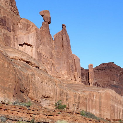 | 32 miles (51.5 km) from Moab, Dead Horse Point State Park is one of Utah’s most spectacular state parks. The view from Dead Horse Point is one of the most photographed scenic vistas in the world. Towering 2,000 feet above the Colorado River, the overlook provides a breathtaking panorama of Canyonlands’ sculpted pinnacles and buttes. | |