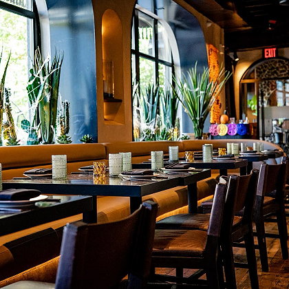 | From private dining rooms, a lush outdoor terrace, or a downstairs mezcal bar, dLeña offers a variety of spaces that can be customized to meet your every need. Chef Richard Sandoval presents a modern take on classic Mexican cuisine. The concept celebrates “leña,” or firewood, and the subtle flavors that smoke can impart to both wood-grilled dishes and a menu focused on mezcal and tequila. | |