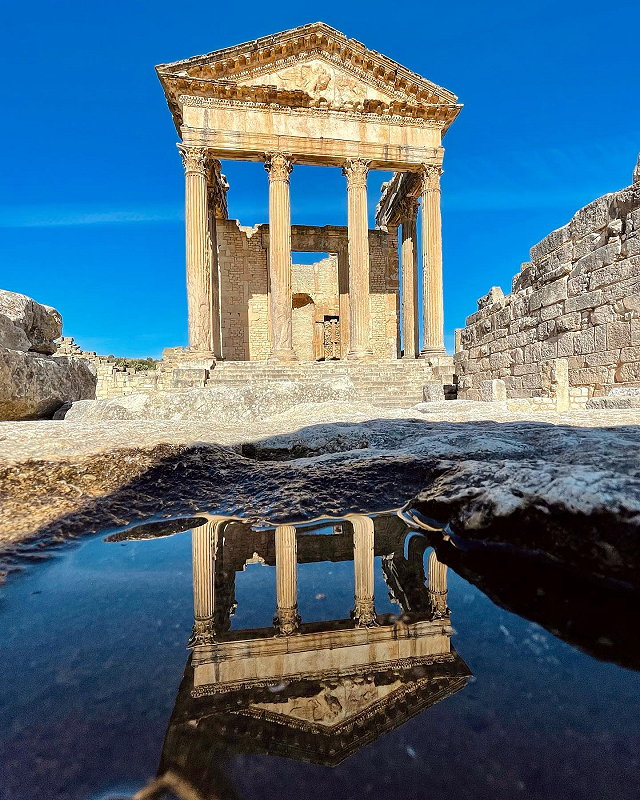 | Dougga, located near the town of Teboursouk in northern Tunisia, is one of the most well-preserved Roman archaeological sites in North Africa and a UNESCO World Heritage Site. Known for its impressive ruins and historical significance, Dougga provides a unique glimpse into the life of an ancient Roman city. | |