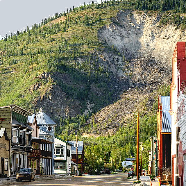 | Dawson’s past is marked by Beringia, an Ice Age period which formed the unique landscape and the treasures they contain, the Tr’ondëk Hwëch’in, who have called this area home for centuries, as well as the Klondike Gold Rush, that put this town on the tongue of stampeders worldwide. | |