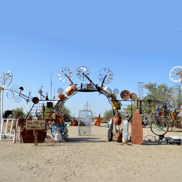 | East Jesus is an outdoor art installation and community located in Niland, California, near the Salton Sea. The name "East Jesus" is a colloquialism used to describe a remote and isolated area. | |