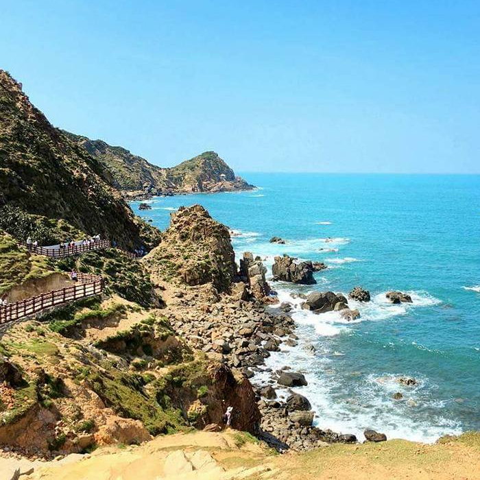 | Spectacular Coastal Scenery: Eo Gio is renowned for its breathtaking natural beauty. The combination of towering cliffs, rugged rock formations, and the turquoise waters of the East Sea creates a dramatic and picturesque landscape. The area is particularly scenic during sunrise and sunset. Windy Climate: As its name suggests, Eo Gio is known for its strong winds. The wind currents blowing through the strait create a refreshing and invigorating atmosphere. Visitors can experience the cool breeze and enjoy the sound of wind whistling through the cliffs. Photography and Sightseeing: Eo Gio offers fantastic opportunities for photography and sightseeing. The contrasting colors of the cliffs, sea, and sky, along with the unique rock formations, make for stunning photographs. Visitors can explore the area on foot, following the walking paths that provide access to different viewpoints. Outdoor Activities: Apart from appreciating the scenic beauty, visitors can engage in outdoor activities at Eo Gio. The area is suitable for picnics, beachcombing, and relaxation. There are also some local seafood restaurants nearby where visitors can savor delicious seafood dishes. Accessibility: Eo Gio is easily accessible from Quy Nhon city. Visitors can reach the site by car, motorbike, or by hiring a taxi or local transportation. The journey takes approximately 30 minutes, depending on the traffic and road conditions. Eo Gio is a popular destination for tourists and locals alike, offering a stunning natural setting and a refreshing escape from the city. The combination of windswept cliffs, azure waters, and tranquil surroundings creates a memorable experience for visitors to Binh Dinh province. | |