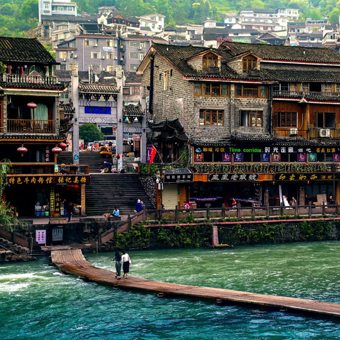 | Fenghuang County, located on the western boundary of Hunan Province, near the border with Guizhou, is a picturesque ancient town known for its well-preserved traditional architecture, scenic landscapes, and rich cultural heritage. The Tuojiang River flows through the town, adding to its scenic charm. | |