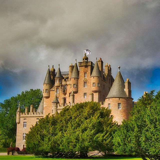 | Glamis Castle is a historic castle located in Angus, Scotland, United Kingdom. It is situated near the village of Glamis and is known for its rich history and architectural significance. The castle has a history dating back to the 14th century. The current structure has evolved over the centuries, with additions and renovations contributing to its unique appearance. | |