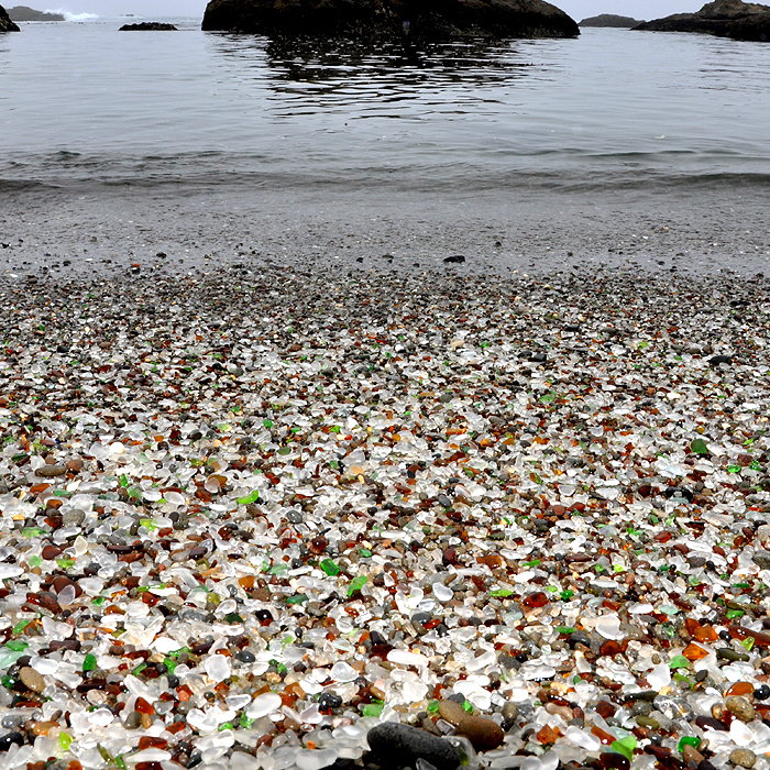 | The glass found on the beach comes from years of dumping by residents and businesses in the area, who used to throw their trash and waste into the ocean. However, in 1967, the beach was closed to dumping and since then, the waves have pounded the discarded glass into smooth, colorful pieces that now cover the beach. Today, visitors come from all over the world to see and collect the unique glass pieces that cover the beach. The glass comes in a variety of colors, including green, blue, clear, and purple, and many visitors enjoy searching for their favorite pieces among the sand. The beach is located near MacKerricher State Park and is open to the public for free. However, visitors are asked to take only small amounts of glass as souvenirs and to respect the beach and its natural environment. | |