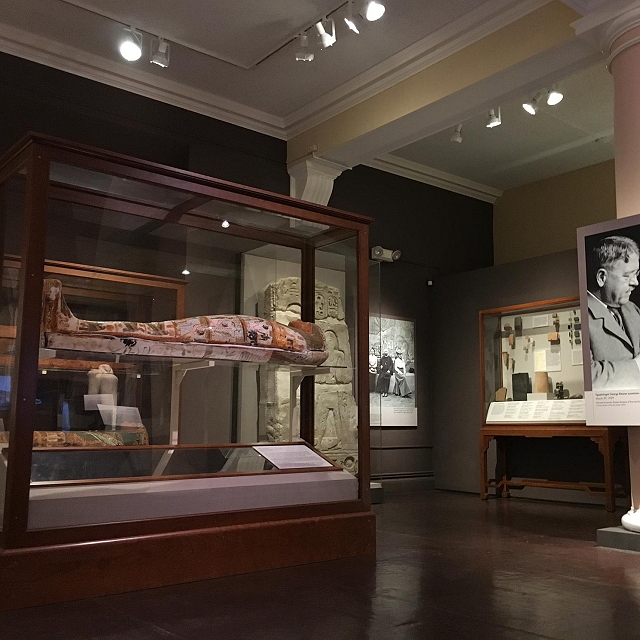 | The Exhibitions of Harvard Museum of the Ancient Near East include a full-scale replica of an Iron Age house, life-sized casts of famous Mesopotamian monuments, authentic mummy coffins, and tablets containing the earliest forms of writing. | |
