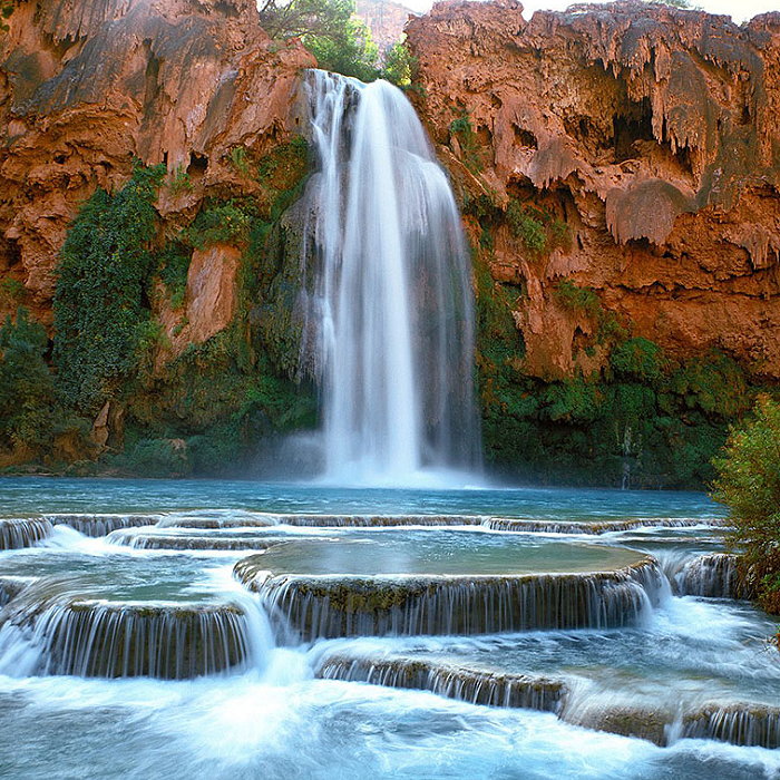| Havasu Falls is a picturesque waterfall located in Supai, Arizona, USA. The falls are located within the Havasupai Indian Reservation and are part of the Grand Canyon National Park. The falls are accessible via a 10-mile hike from the trailhead located at Hualapai Hilltop. It is within Havasupai tribal lands. | |