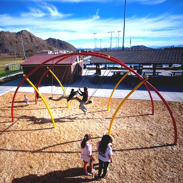 | The 20-acre Heritage Lake Sports Park is Menifee’s newest park featuring six soccer fields, two pickleball courts, three tennis courts and three basketball courts — all lighted. The park has two restroom buildings, children’s play areas and gazebos. | |