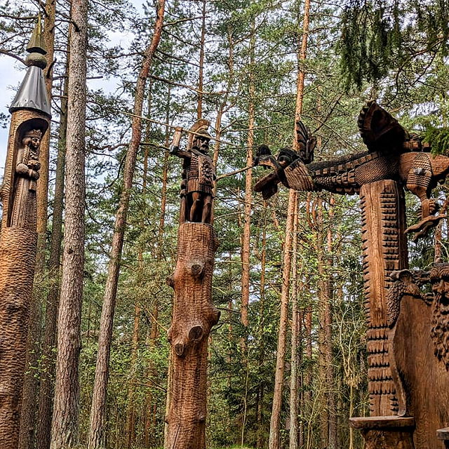 | - Location: The Hill of Witches is situated in a forested area along the Curonian Spit, overlooking the Curonian Lagoon. It is easily accessible by foot or bicycle from Juodkrantė. - Sculptures: The main attraction of the Hill of Witches is its collection of wooden sculptures depicting various characters and scenes from Lithuanian folklore, mythology, and fairy tales. These sculptures were created by Lithuanian artists starting in the mid-20th century. - History: The tradition of carving wooden sculptures on the Hill of Witches began in the 20th century when local artists and craftsmen started creating works of art inspired by folklore and pagan beliefs. The sculptures were originally made from driftwood found along the shore. - Themes: The sculptures on the Hill of Witches depict a wide range of themes, including mythical creatures like witches, devils, and forest spirits, as well as scenes from traditional Lithuanian folk tales and legends. Each sculpture tells a story and reflects the rich cultural heritage of Lithuania. - Walking Trail: Visitors to the Hill of Witches can follow a scenic walking trail through the forest, passing by the various sculptures along the way. Informational signs provide context and explanations for each sculpture, making it an educational as well as an enjoyable experience. - Natural Setting: The Hill of Witches is set amidst a beautiful natural landscape of pine forests and sand dunes, with views of the Curonian Lagoon. The peaceful surroundings add to the enchanting atmosphere of the sculpture park. - Cultural Heritage: The Hill of Witches is not only a popular tourist attraction but also an important cultural landmark in Lithuania. It celebrates the country's folklore and traditions while also showcasing the creativity and talent of Lithuanian artists. | |