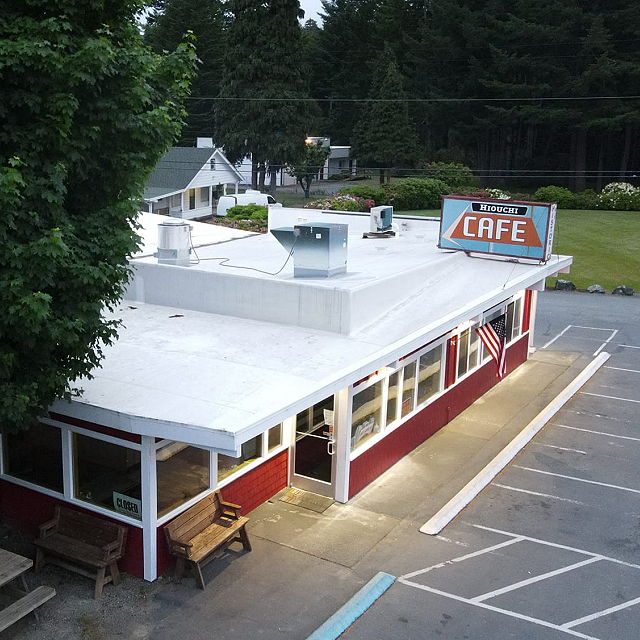 | The Historic Hiouchi Cafe in Crescent City, California, is a charming cafe located near the Smith River. It's known for its rustic atmosphere and serves as a popular spot for locals and visitors alike. | |