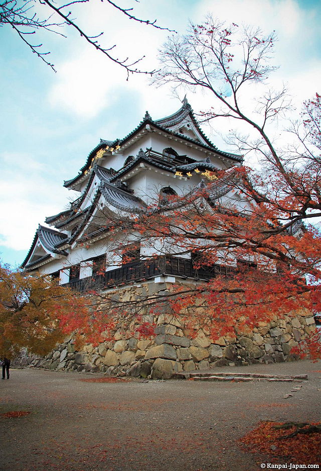 | Hikone Castle is a Japanese Edo-period Japanese castle located in the city of Hikone, Shiga Prefecture, Japan. Hikone Castle is a magnificent 400 year old structure. It stands three stories tall, with an outer wall of stone at its base, and ivory white stucco above, a beautiful harmony that is characteristic of this castle. | |