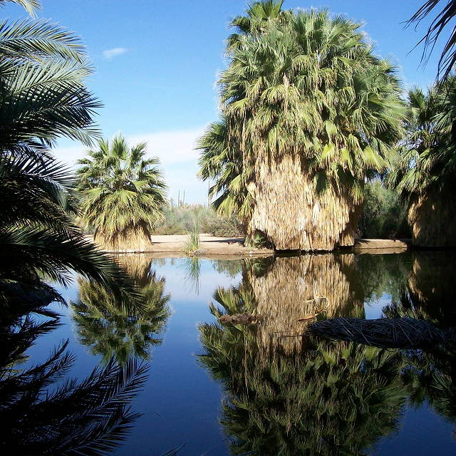 | Holtville Hot Springs is a beautiful palm oasis in a lifeless desert of the Imperial Valley near the United States-Mexico border just off Highway 8. Holtville Hot Springs is an incredible natural hot spring where anyone can take a hot bath in the middle of the desert. Filled with hot natural water, two cement pools are great places for relaxing soaking. | |