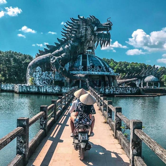 | Ho Thuy Tien was built in the 2000s and was the first water park in Vietnam. It was designed with elaborate structures, including adragon-shaped entrance, colorful slides, pools, and various water attractions. The park was set against abackdrop of lush greenery, creating avisually appealing and refreshing environment. However, Ho Thuy Tien has been abandoned for several years and now stands in astate of decay. The park's closure was due to financial difficulties, and the attractions are no longer operational. Despite its abandonment, the park continues to attract visitors who are intrigued by its eerie and photogenic atmosphere. The decaying structures and overgrown vegetation have created a unique and somewhat surreal ambiance at Ho Thuy Tien. Many visitors explore the park to capture hauntingly beautiful photographs of the abandoned water park. It's important to note that Ho Thuy Tien is no longer maintained or supervised, and visitors should exercise caution when exploring the premises. It is advisable to visit during daylight hours and respect any signage or barriers in place. While Ho Thuy Tien may no longer function as awater park, it has gained areputation as a captivating and mysterious site, drawing curious visitors who are interested in urban exploration and photography. | |